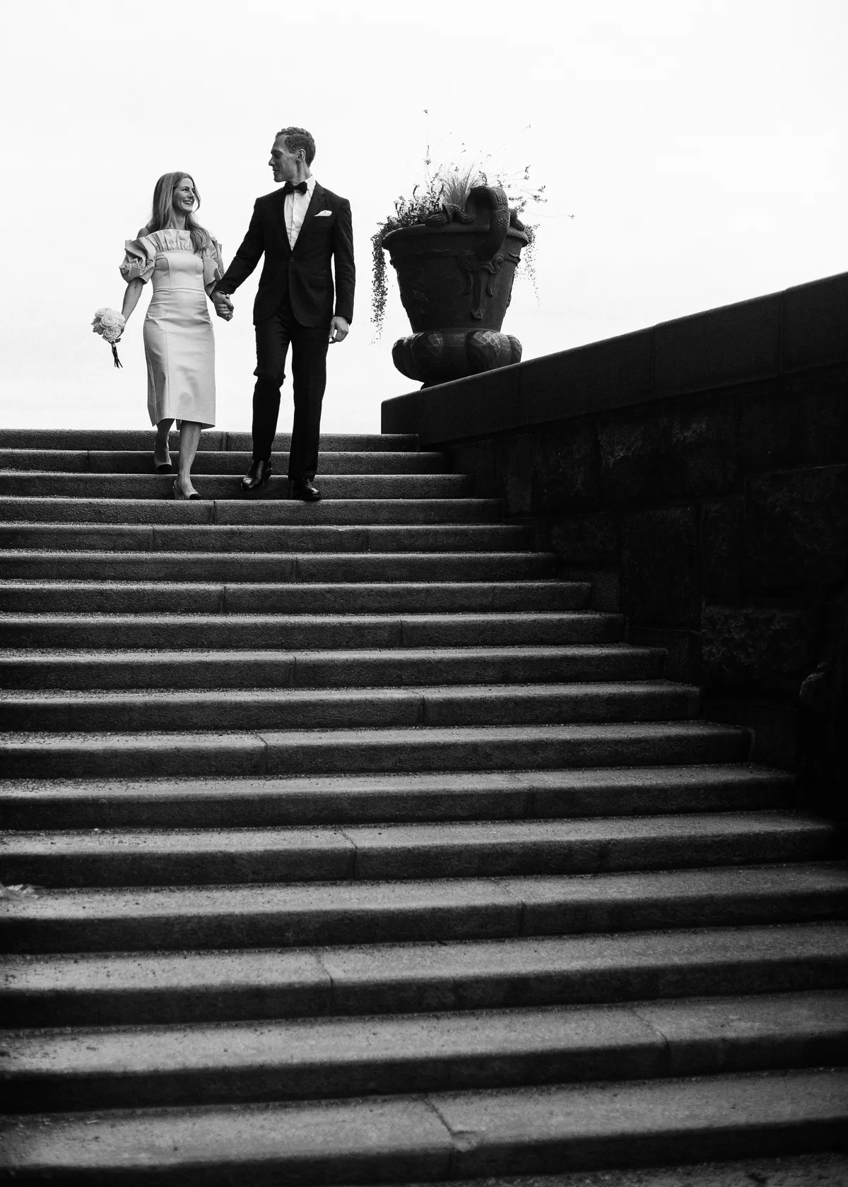 Sanne och Calle höll sin vigsel i Stockholms stadshus. Den vacrka omgivningen med utsikt över Riddarfjärden skapade en minnesvärd inramning.